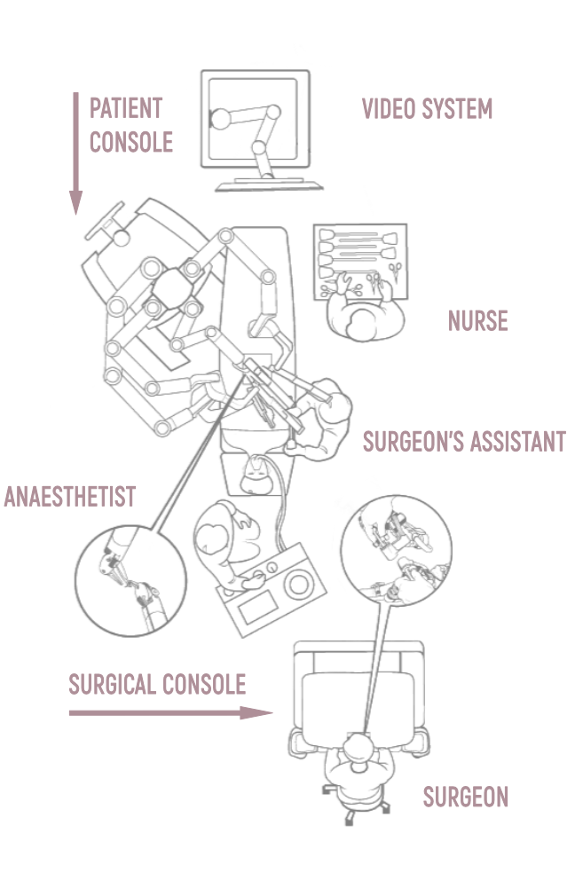 SCHEMATIC OF AN OPERATING THEATRE EQUIPPED WITH A DAVINCI ROBOT